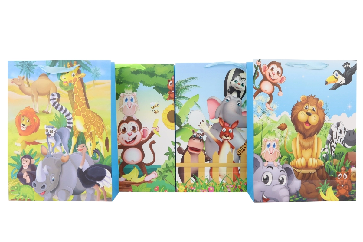 Punga cadou mare cu motive safari este ideală pentru ambalarea cadourilor mai voluminoase. Designurile atrăgătoare cu animale exotice oferă cadoului un aspect deosebit și economisesc timp la împachetare. Punga este potrivită atât pentru copii, cât și pentru adulți și se potrivește pentru zile de naștere, petreceri sau sărbători.