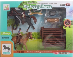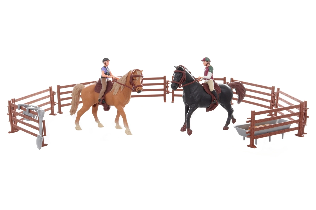 Acest set de căluți cu accesorii oferă copiilor ore întregi de distracție creativă. Cu doi cai și doi călăreți, copiii pot crea propriile povești de echitație, curse și scenarii de îngrijire a animalelor. Setul include un țarc și alte accesorii mici care îmbogățesc joaca și stimulează imaginația.