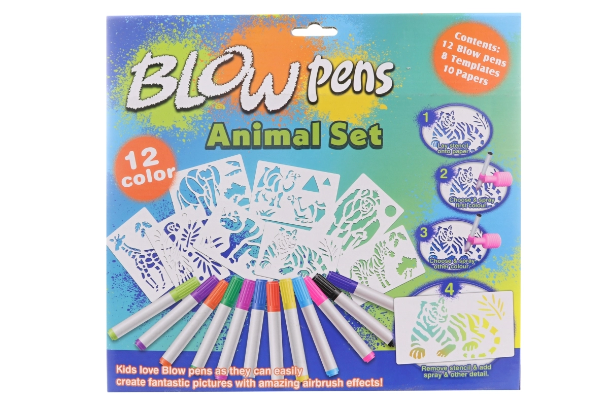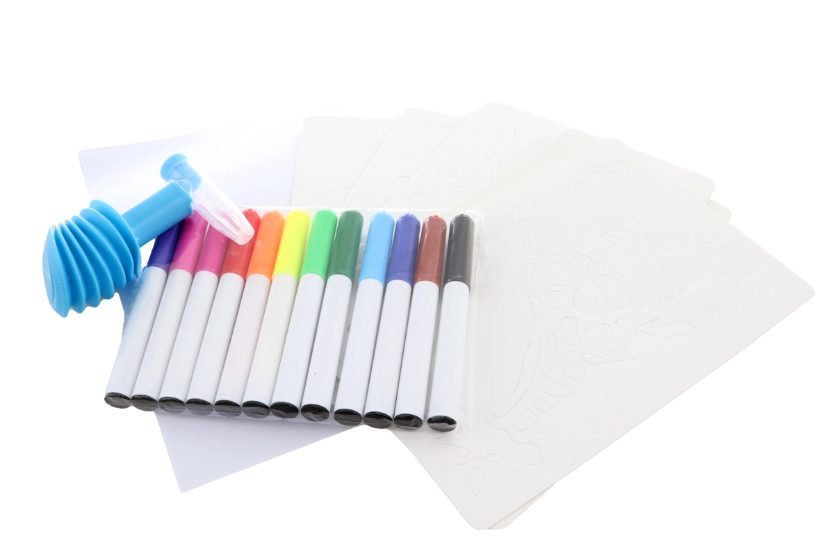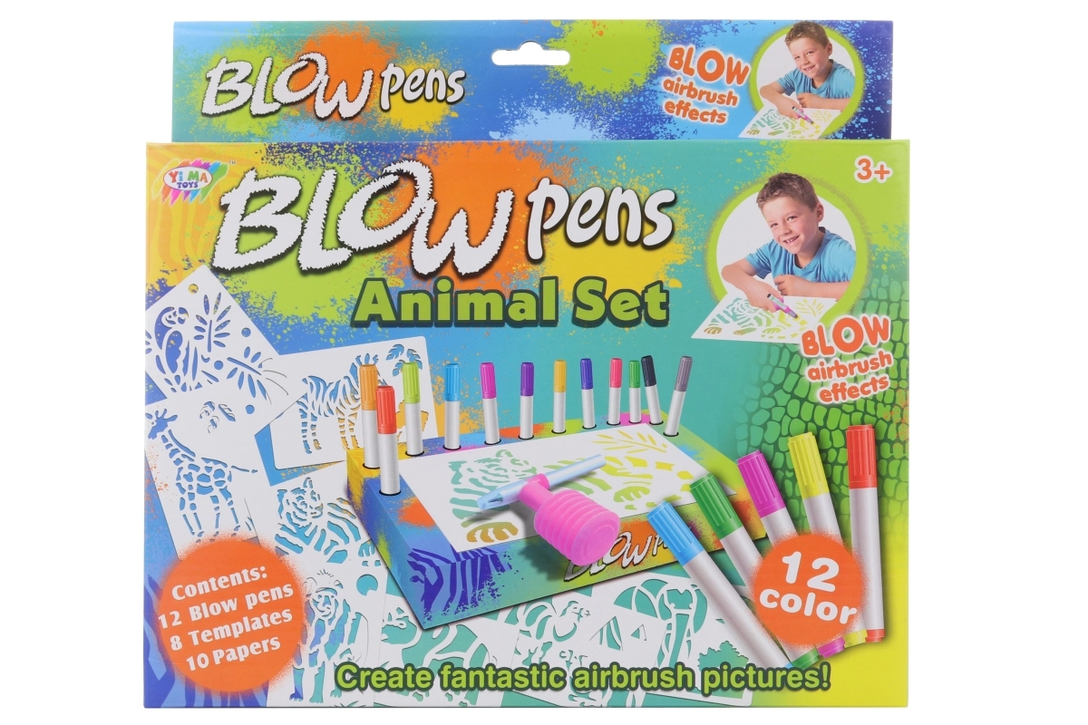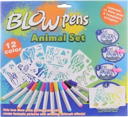 Cu acest set mare de carioci de suflat, copiii creează cu ușurință desene originale cu animale din safari. Datorită adaptorului cu pompiță, nu este nevoie de suflu puternic – culoarea se aplică printr-un jet fin, creând tranziții și umbre spectaculoase. Suportul practic și holderul păstrează cariocile organizate la un loc.
