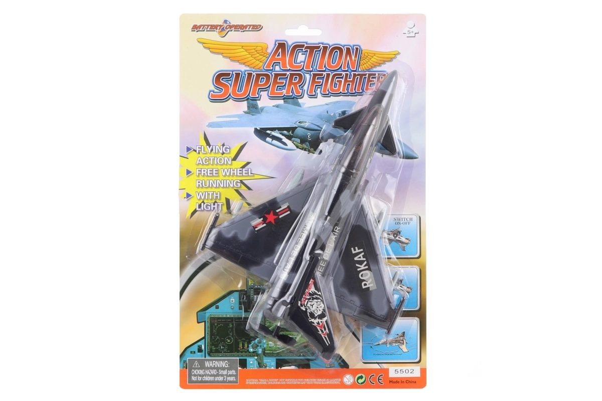 Acest avion de vânătoare pe baterii este o alegere ideală pentru micii pasionați de zbor. Pur și simplu îl agățați de coarda inclusă și urmăriți cum se rotește, se aprinde și elicelul se învârte pentru și mai multă distracție. Datorită construcției din plastic rezistent, este potrivit pentru joacă zilnică.