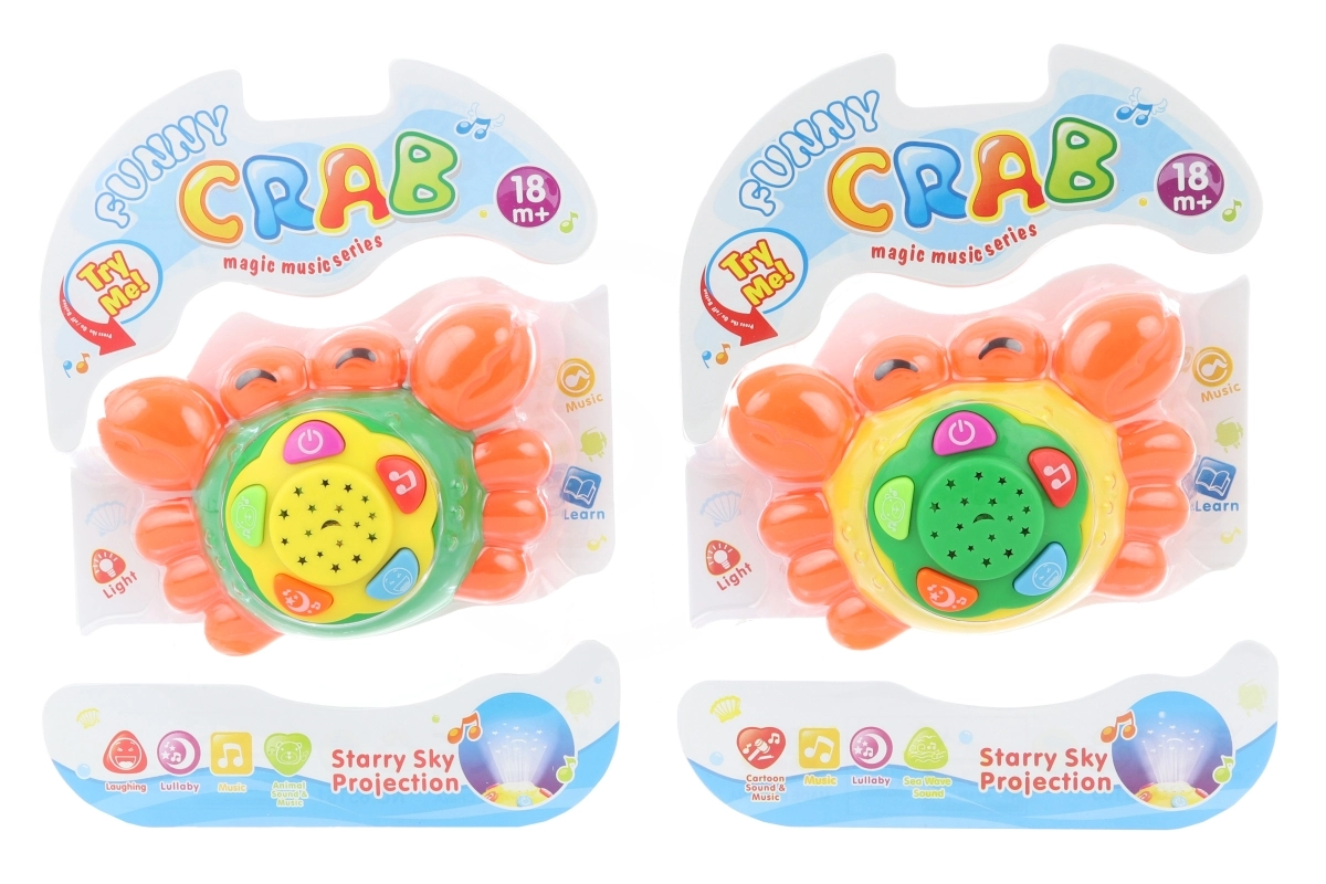 Acest crab sonor colorat este un companion minunat pentru cei mai mici. La apăsarea butoanelor clipește cu lumini și redă sunete amuzante, care susțin percepția auditivă și captează atenția copilului. Datorită dimensiunii compacte, se ține și se manevrează ușor chiar și de mânuțe mici.