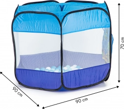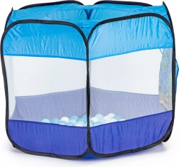 Căutați un loc de joacă sigur și creativ? Această piscină uscată/cort cu bile este ideală pentru utilizare în interior și în exterior. Datorită ramei autoreglabile, o puteți deschide în câteva clipe și o pliați la fel de repede. Panourile din plasă asigură aerisirea și vizibilitatea în interior.