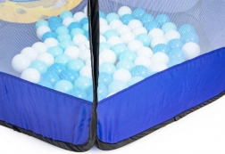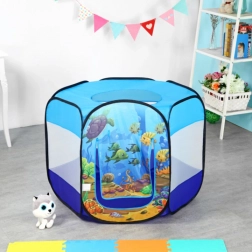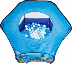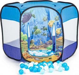 Imprimeul colorat cu motiv oceanic stimulează imaginația, iar 100 de bile din plastic (Ø 6 cm) oferă ore întregi de distracție. Podeaua întărită sporește confortul și durabilitatea la joacă acasă sau în grădină.