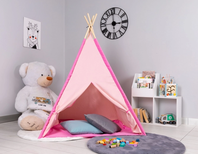 Acest cort Teepee albastru este locul perfect de joacă pentru copii! Este ideal atât pentru utilizarea în interior cât și în aer liber, aducând un strop de aventură fiecărui mediu.