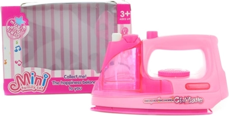 Un fier de călcat pentru copii, distractiv, pentru micii ajutori în gospodărie, oferă funcții realiste – luminează, redă sunete și, datorită pulverizatorului de apă, amintește și mai mult de călcatul adevărat. Dimensiune compactă de cca 17 cm, execuție sigură și operare ușoară, pe placul oricărui copil de la 3 ani.