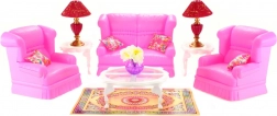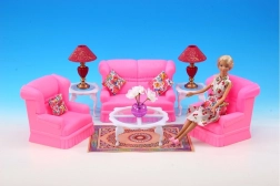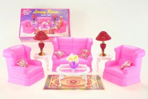 Creați un colț elegant de relaxare pentru păpuși cu setul GLORIE. Datorită dotărilor bogate și accesoriilor realiste, copiii pot pune în scenă cu ușurință situații cotidiene, pot proiecta interioare și își pot dezvolta abilitățile sociale și imaginația. Setul este din plastic rezistent și este potrivit pentru mărimile obișnuite de păpuși.