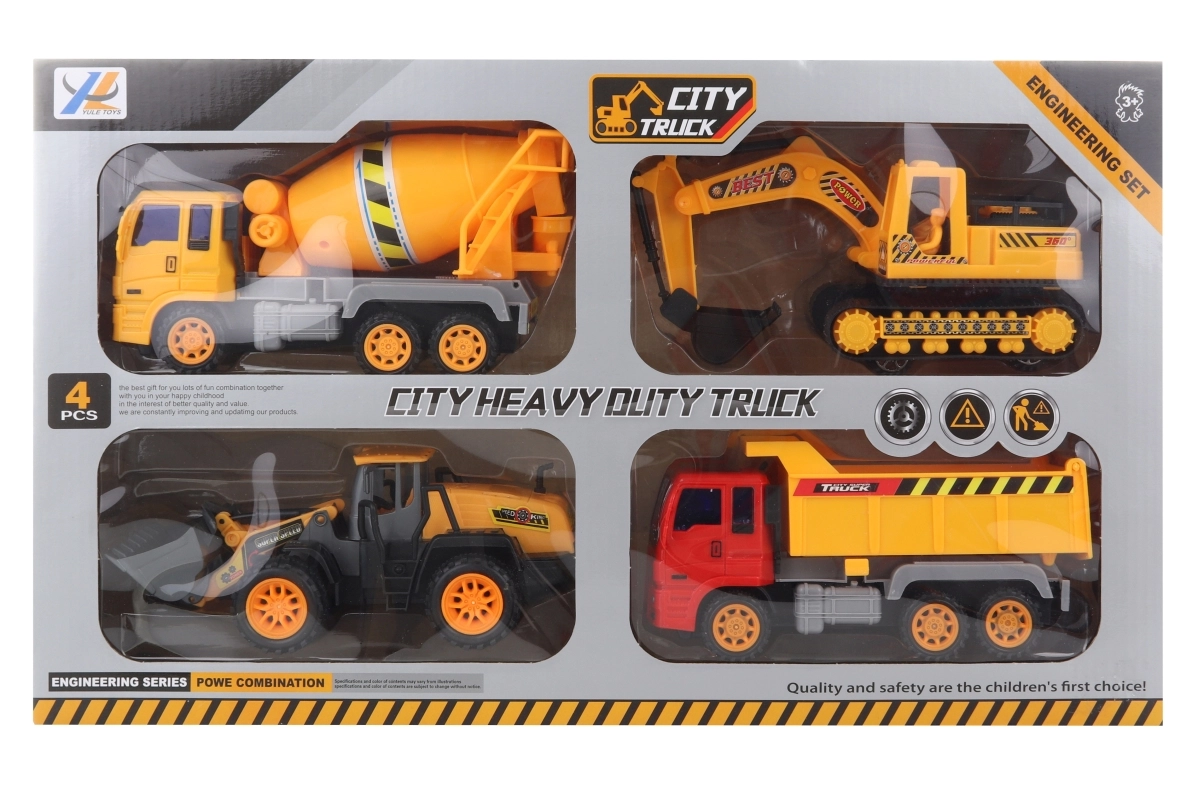Acest set de camioane de construcții pentru copii oferă tot ce au nevoie micii constructori pentru joacă creativă acasă sau în grădină. Datorită celor patru vehicule diferite, copiii își pot crea cu ușurință propriul șantier și își dezvoltă motricitatea, imaginația și coordonația.