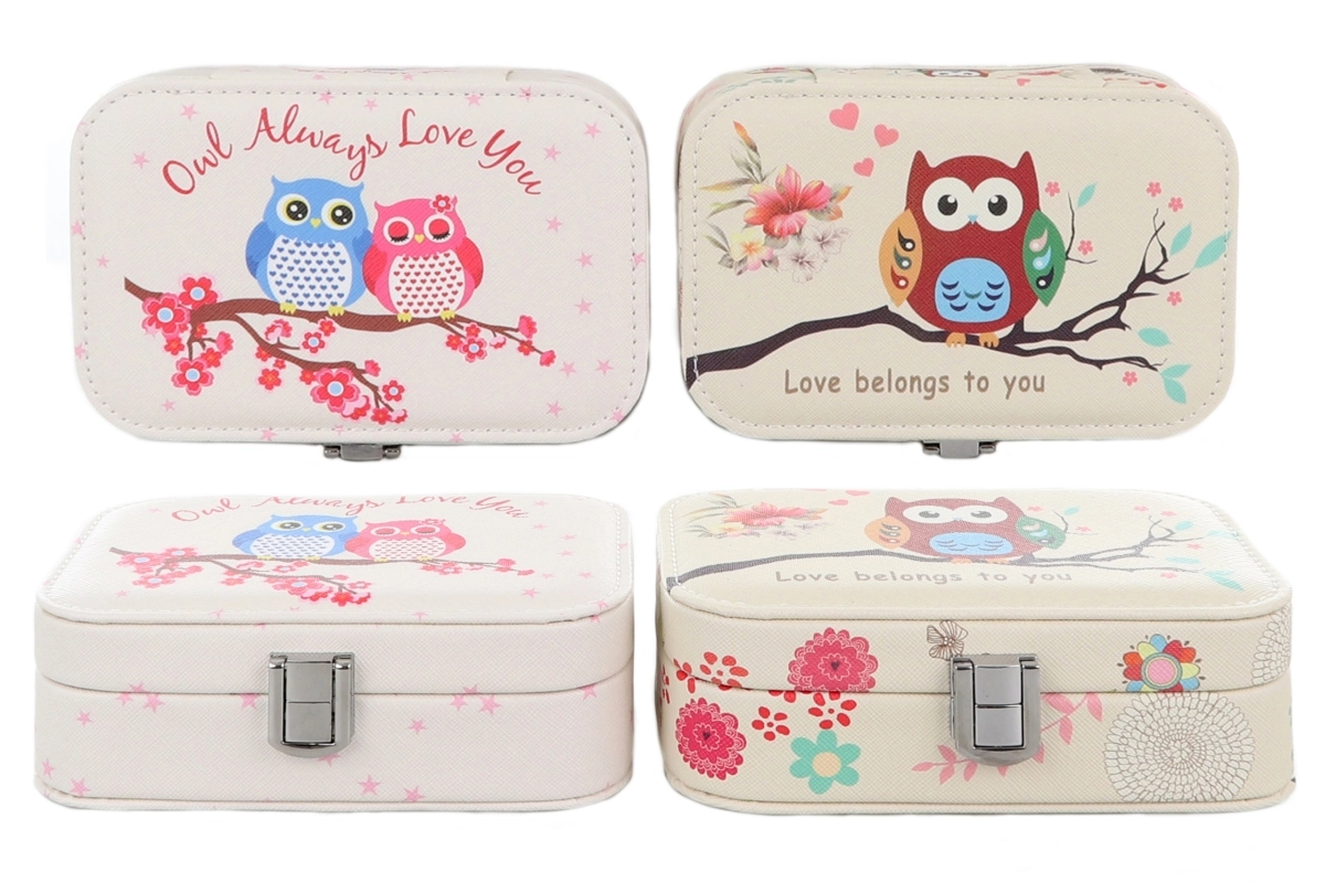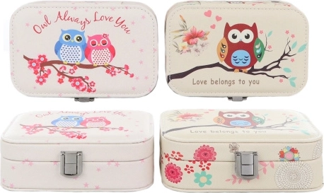 Această delicată cutie de bijuterii cu motiv de bufniță va încânta orice copil care dorește să își păstreze în siguranță și organizat brățările, cerceii sau inelele. În interior se află o oglindă practică și trei compartimente separate, astfel încât totul rămâne la locul lui.