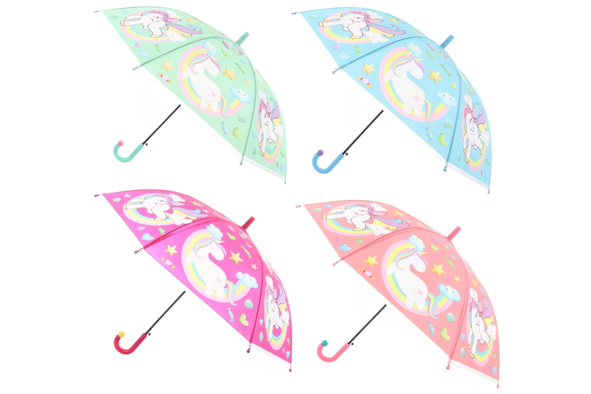 Bucură-te de confort și un stil jucăuș cu această umbrelă cu unicorni. Datorită mecanismului automat, se deschide ușor și rapid, astfel încât vei fi la adăpost de ploaie într-o clipă. Construcția ușoară este ideală pentru călătorii și pentru școală.