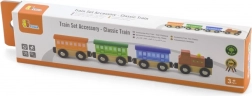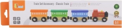 Setul din lemn Trenuleț clasic include 4 părți care sunt îmbinate magnetice. Această jucărie a fost proiectată de un producător renumit de jucării din lemn, compania Viga Toys. Setul poate fi folosit ca o jucărie independentă sau ca un accesoriu pentru alte trasee de trenuleț, seturi de construcție și seturi.
