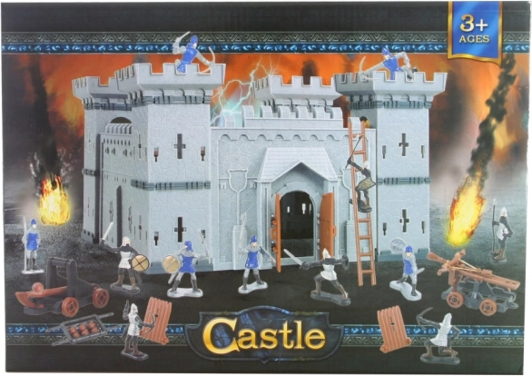 Set de joacă pentru asediul castelului. Conține un castel cu dimensiuni de aproximativ 28 x 28 x 29 cm, cavaleri și arme pentru asedierea castelului. Cavaleri aprox. 6 x 4 cm. Material: plastic. Dimensiunile ambalajului aprox. 36 x 25 x 7 cm. Vârsta 3+