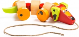 Acest teckel de lemn pe sfoară este o jucărie ideală pentru cei mici. Cu un design vesel și roți mobile, oferă copilului o distracție interactivă. Este un însoțitor excelent pentru dezvoltarea motricității și imaginației copilului.
