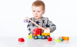 Jucăria sprijină dezvoltarea abilităților senzomotorii și creativitatea prin posibilitatea de manipulare și asamblare a blocurilor.