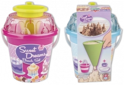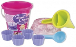 Acest set Androni de mărime medie aduce tot ce este necesar pentru joacă creativă în nisip sau lângă apă. Pâlnia pentru decorare le permite copiilor să combine nisipul cu apa și să creeze „brioșe” și alte opere originale, în timp ce formele în formă de guguluf și sita transparentă în formă de tort dezvoltă imaginația și motricitatea fină.