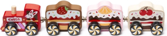 Oferiți-le copiilor distracția cu trenulețe într-un design delicios de dulce. Trenulețul din lemn CUBIKA „Cakes” îmbină aspectul atrăgător al prăjiturelelor cu cuplarea magnetică funcțională a vagoanelor. Prelucrarea atentă din lemn european și finisajele fine asigură durabilitate și joc în siguranță.