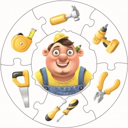 Fiecare motiv îi conduce pe copii la recunoașterea uneltelor de lucru și a conexiunilor. Prin asocierea corectă se antrenează gândirea logică, percepția vizuală și motricitatea fină. Puzzle-urile sunt fabricate din material provenit din surse gestionate ecologic și pot fi șterse cu o cârpă umedă.