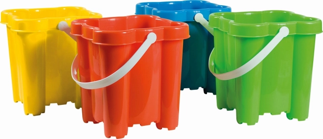Această găleată durabilă pentru nisip, într-o culoare galbenă intensă, este ideală pentru toți micii iubitori ai gropilor cu nisip. Datorită formei de castel cu patru turnuri, copiii pot crea cu ușurință construcții impresionante. Produsul provine de la compania italiană Androni Giocattoli, care din 1974 produce jucării din plastic de calitate, cu accent pe siguranță și durabilitate.