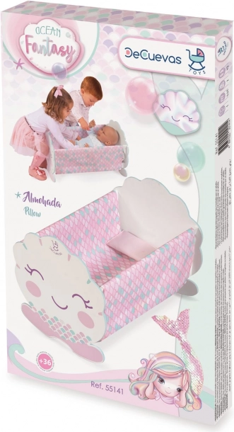 Leagănul din lemn pentru păpuși din colecția OCEAN FANTASY se remarcă prin aspectul elegant, cu efecte irizate, detalii sclipitoare și capete în formă de scoică marină. Datorită realizării solide din MDF și lemn masiv, leagănul este stabil și sigur, ideal pentru joaca de zi cu zi a copiilor de la 3 ani.