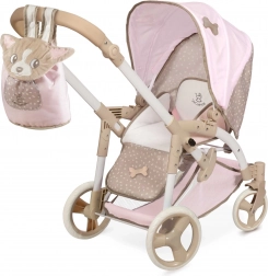 Căruciorul fermecător pentru păpuși în tonuri roz-bej îmbină perfect designul și funcționalitatea. Datorită landoului reglabil, care se transformă ușor în scaun sport, copiii se vor bucura de un joc mai realist. Este inclusă și o geantă de transport pentru păpușă, cu broderie fină din catifea DIDI și paravânt practic.