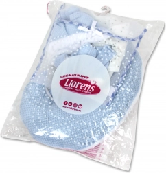 Setul este fabricat în Spania și vine într-o plasă decorativă cu umeraș de carton, iar perna este așezată într-un ambalaj de protecție – ideal de oferit cadou. Datorită croielii precise, se potrivește păpușilor LLORENS de 40–42 cm și ușurează schimbările dese în joaca de zi cu zi.