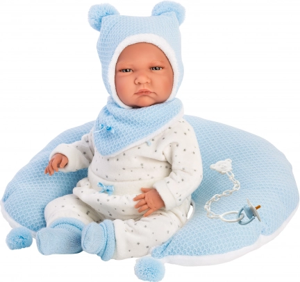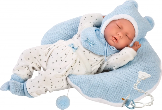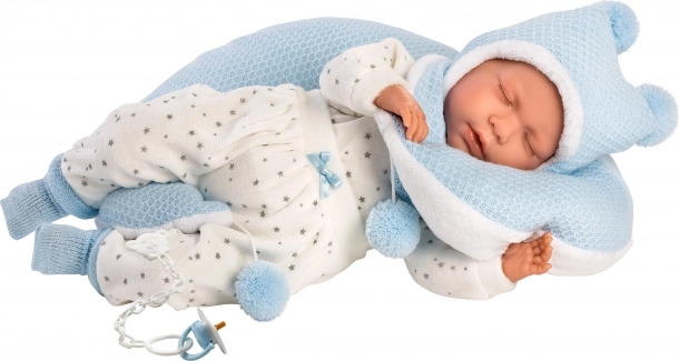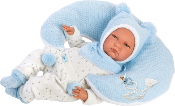 Acest set de hăinuțe stilat pentru păpușa NEW BORN LLORENS, mărimea 40–42 cm, oferă tot ce au nevoie copiii pentru jocuri creative și îngrijirea „bebelușului”. Textilele moi, în armonioasa combinație albastru‑alb, și atenția la detalii asigură un aspect grozav și o îmbrăcare confortabilă. Perna de alăptare practică susține jocul realist și dezvoltarea motricității fine.