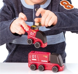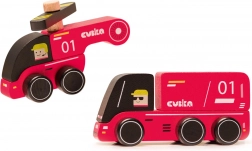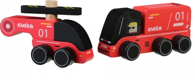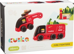 Oferiți-le copiilor joc creativ cu setul din lemn CUBIKA pompieri. Setul include o mașină de pompieri și un elicopter realizate din cel mai bun lemn de arțar și fag, lăcuite cu vopsele pe bază de apă fără miros. Datorită marginilor rotunjite și finisajului atent, se țin perfect chiar și în mâini mici și susțin dezvoltarea senzomotorie, gândirea logică și creativitatea.