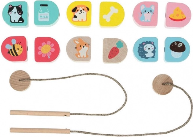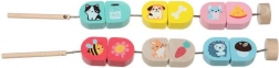 Descoperiți un joc educativ distractiv care dezvoltă abilitățile copiilor de la trei ani. Setul de înșirat Cubika Ce mâncăm aduce piese din lemn colorate cu animăluțe și bunătățile lor preferate. Sarcina este să găsiți perechile corecte și să le înșirați pe șnur – ideal pentru antrenarea motricității fine, răbdării și gândirii logice.