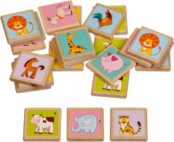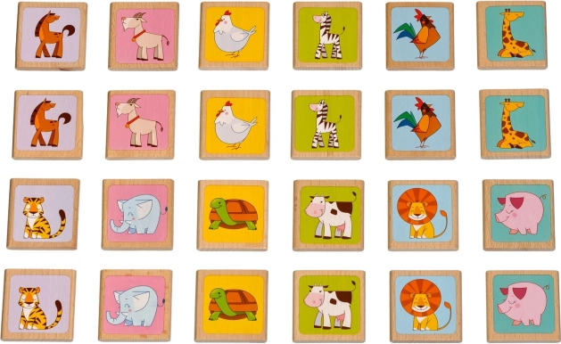 Pexeso-ul din lemn Animăluțe de la LUCY & LEO aduce 12 perechi de imagini colorate cu animăluțe îndrăgite. Fiecare cartonaș are o dimensiune plăcută, se ține ușor în mâna copilului și, datorită lemnului de calitate, rezistă și la joacă frecventă. Ideal pentru primele jocuri de memorie, pentru momentele petrecute împreună cu părinții sau pentru descoperirea independentă.