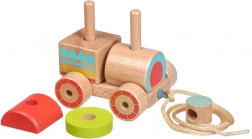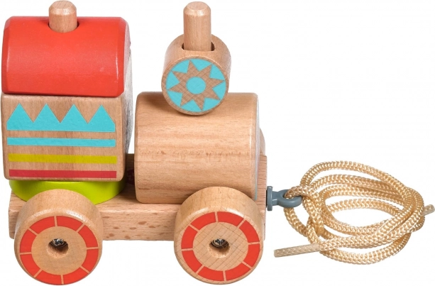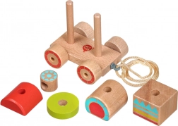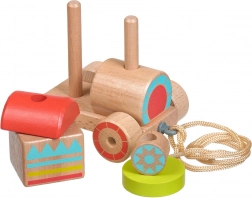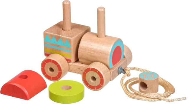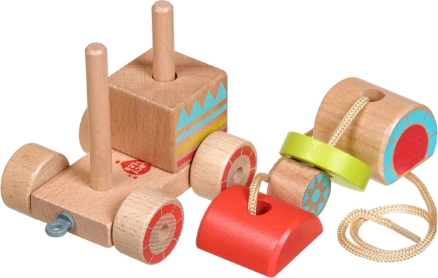 Trenulețul din lemn de tras combină aspectul clasic cu elemente educaționale moderne. Copiii așază piesele colorate la locul lor, își antrenează priza și descoperă formele și culorile de bază. După asamblare, pot trage trenulețul cu ajutorul șnurului și astfel își dezvoltă coordonarea mersului.