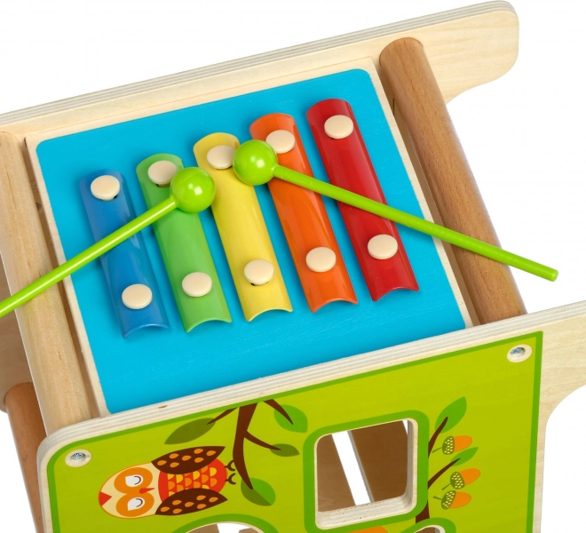 Xilofonul colorat, cu două bețișoare, dezvoltă ritmul și percepția auditivă. Copiii se bucură de primele melodii și de o stimulare sonoră jucăușă.