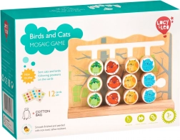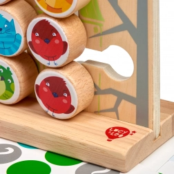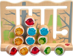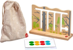Acest joc din lemn de calitate oferă o deplasare intuitivă a butonașelor colorate cu animăluțe de-a lungul șinelor frezate. Datorită celor 6 carduri față-verso cu șabloane, copiii exersează coordonarea mână–ochi, răbdarea și concentrarea. După joacă, toate piesele pot fi depozitate cu ușurință într-un săculeț de in.