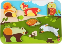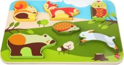 Placa netedă și solidă, cu ilustrații ale pădurii, îi ajută pe copii la potrivirea corectă, în timp ce formele mari și clare susțin coordonarea mână–ochi și orientarea spațială. Aranjarea simplă a motivelor menține atenția și construiește încrederea prin reușita asamblării.