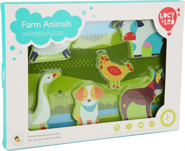 Descoperă puzzle-ul colorat din lemn cu tematică de fermă de la LUCY & LEO, ideal pentru copii de la 3 ani. Conține 7 piese solide cu animale, ușor de ținut în mână și de introdus în decupajele dedicate. Jucăria dezvoltă motricitatea fină, recunoașterea formelor și a animalelor și răbdarea. Piesele sunt suficient de mari și stabile, astfel încât pot sta și în picioare de sine stătător.