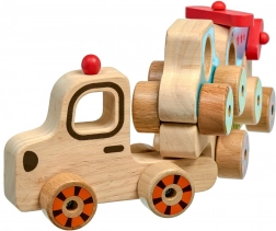 Camionul, mașinuța și elicopterul pot fi folosite separat sau combinate într-o singură garnitură. Copiii își antrenează imaginația și logica atunci când încarcă și transportă.