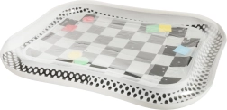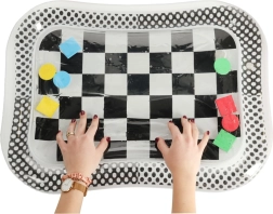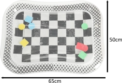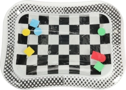 Descoperiți covorașul de apă cu contrast, care nu numai că va atrage copilul dumneavoastră, dar va sprijini și dezvoltarea sa senzorială și motorie. Acest covoraș cu motiv de tablă alb-negru conține forme geometrice colorate plutitoare care se mișcă la atingerea copilului.