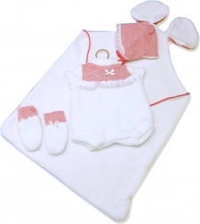 Salteluța decorativă cu urechiușe împreună cu setul din 3 piese creează o ținută asortată care aduce o nouă dimensiune jocului cu păpușa.