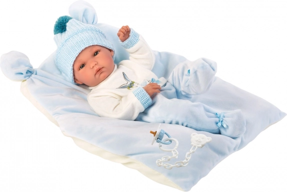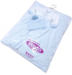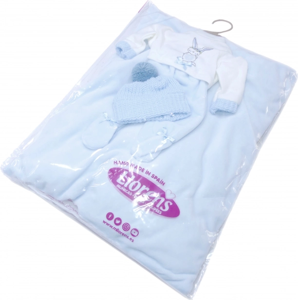 Hăinuțe pentru păpușă din colecția New Born este ideală pentru păpușile de mărime 35-36 cm. Acest set drăguț de haine include 3 piese și o pernuță, care poate fi folosită ca suport. Este fabricat în Spania și ambalajul include o folie de plastic cu umeraș din plastic sau carton. Potrivit pentru copiii de la 3 ani în sus.
