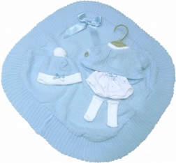 Setul include top, căciuliță, șosete și păturică, care împreună creează un aspect perfect pentru păpușa dvs.