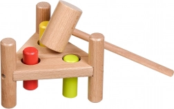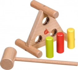 Acest bătător din lemn de calitate, cu bază triunghiulară, este o alegere ideală pentru copiii care iubesc jocul activ și învățarea. Datorită construcției simple și sigure, copiii își exersează motricitatea fină, spiritul de observație și percepția spațială. Țărușii colorați (roșu, galben, verde) îi atrag la explorare și susțin învățarea culorilor.