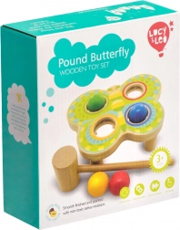 Acest bătător din lemn de înaltă calitate, în formă de fluture, îi va încânta pe cei mici cu culori vesele și un principiu de joc ingenios. Copilul lovește ușor cu ciocănelul bilele colorate, iar acestea cad în orificiile de aceeași culoare, exersând astfel coordonarea și recunoașterea culorilor.