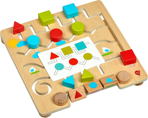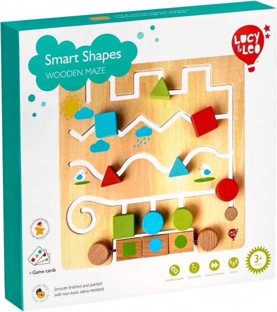 Labirintul din lemn cu forme geometrice LUCY & LEO este o jucărie distractivă și educativă care îi ajută pe copii să învețe formele și culorile în mod natural. Tabla de joc netedă, cu trasee sinuase, ghidează piesele colorate astfel încât să corespundă formelor de pe blocurile rotative sau modelelor de pe carduri. Datorită lemnului robust și execuției sigure, jucăria este potrivită pentru joaca zilnică.