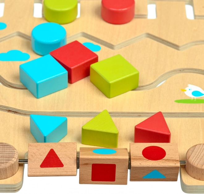 Formele colorate se deplasează pe trasee astfel încât să corespundă modelului. Copiii exersează coordonarea mână–ochi, concentrarea și rezolvarea sarcinilor pas cu pas.