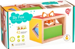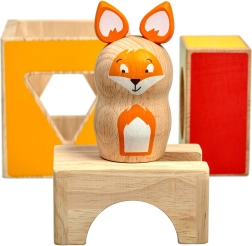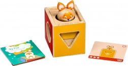 Acest joc educativ din lemn conține trei cuburi masive cu decupaje de forme diferite, o figurină din lemn în formă de vulpe și un set de carduri duble-față cu sarcini de dificultate variată. Copiii construiesc și combină cuburile după modele, astfel încât vulpea să se „ascundă” corect, exersând strategia și percepția spațială.