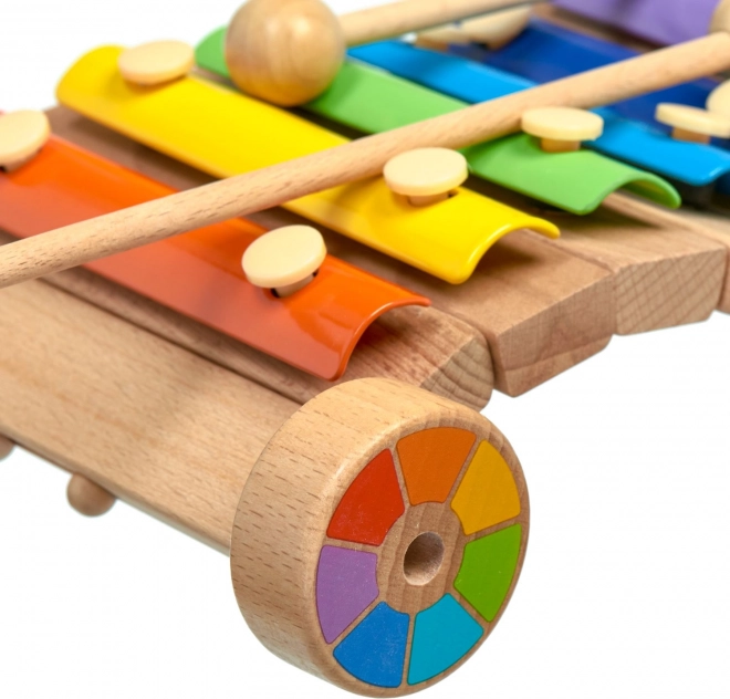 Șasiul din lemn cu roți permite să tragi sau să împingi xilofonul, făcând învățarea muzicii și mai distractivă.