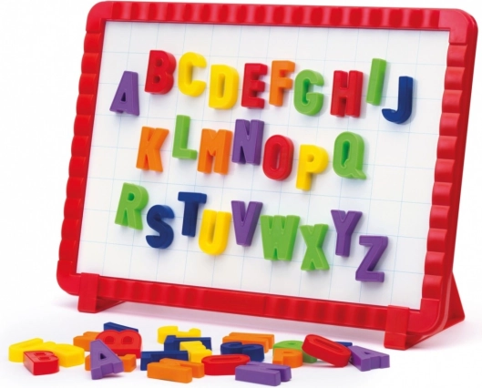 Setul conține 48 de litere mari și o tablă magnetică cu două fețe.