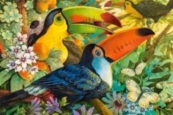 Puzzle-ul elegant cu motiv natural „Interlude” aduce culorile vii ale pădurii tropicale și siluetele expresive ale tucanilor. Datorită celor 3000 de piese tăiate cu precizie, este o provocare care încântă atât iubitorii exigenți de puzzle-uri, cât și începătorii ambițioși.