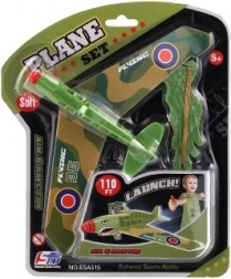 Acest avion cu lansator este ideal pentru copiii care iubesc aventurile în aer liber. Cu dimensiunile de 25 x 14 cm, este ușor de transportat și pregătit pentru a zbura.