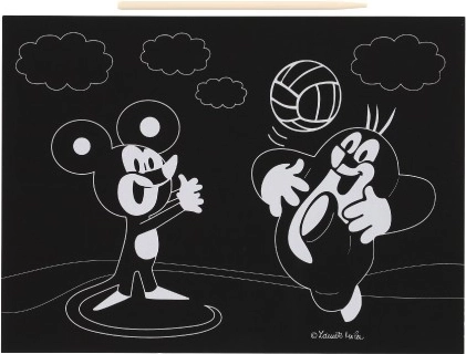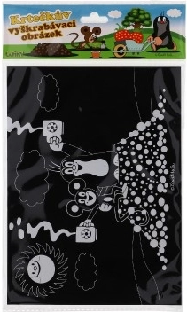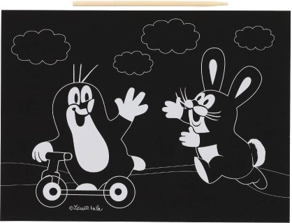 Bucurați-vă de distracția creativă cu tabloul de zgâriat cu motivele Krtek și prietenii săi. Cu ajutorul spatulei de lemn dezvăluiți straturile colorate ascunse.