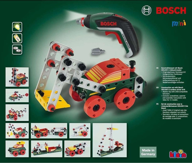 Acest set de construcție bogat echipat îmbină asamblarea creativă cu jocul realist cu unelte adevărate. Cu ajutorul șurubelniței electrice pentru copii BOSCH Ixolino, cei mici pot monta șuruburi, îmbina piese și construi propriile structuri sau pot urma instrucțiunile incluse pentru 11 modele de vehicule.