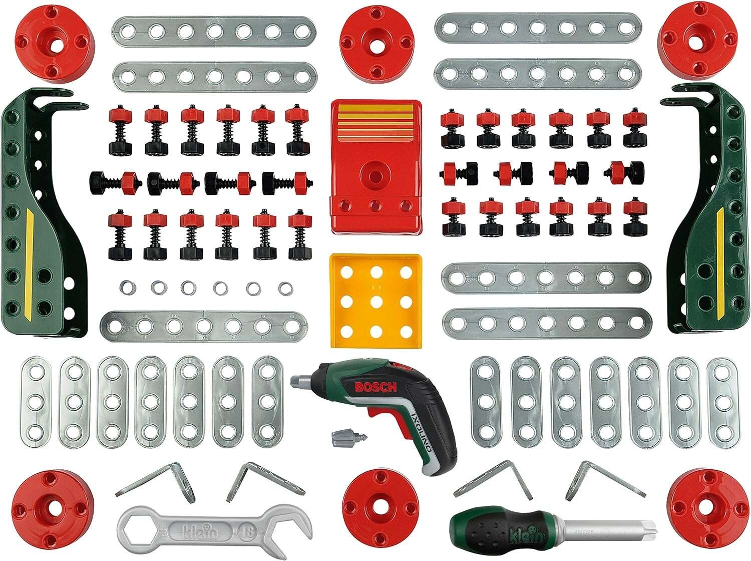 Setul include 77 de componente atent proiectate – lamele de prindere, colțare, rotițe, șuruburi și piulițe – precum și unelte manuale precum cheie și șurubelniță. Ixolino ergonomic, cu mâner cauciucat și rotație stânga/dreapta, permite înșurubarea ușoară pentru mâinile mici ale copiilor.